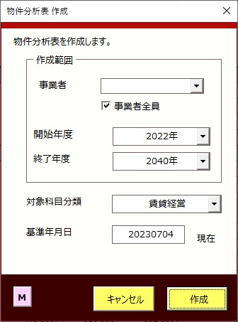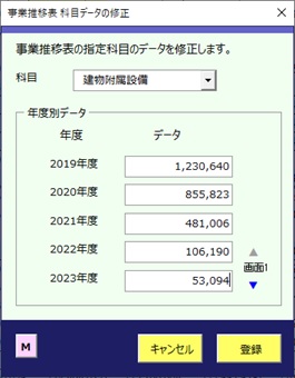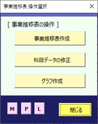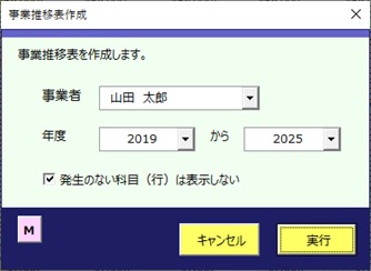 [事業推移表作成]ボタンをクリックすると次の操作画面が表示されます。