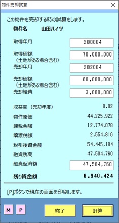 ◆売却年月、売却価額、売却経費を入力し[計算]ボタンをクリックします。