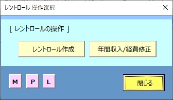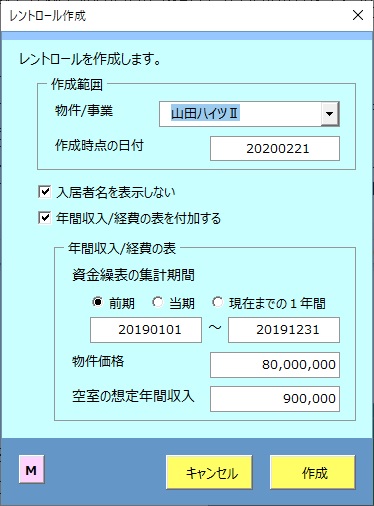 メニュー画面で[レントロール作成]を選択すると、下図の操作画面が表示されます。