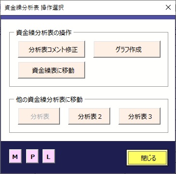 「他の資金繰分析表に移動」欄の[分析表][分析表2][分析表3]…