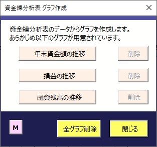 [グラフ作成]…資金繰分析表からグラフを作成します。
