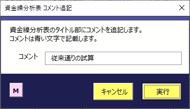 [分析表コメント修正]…資金繰分析表のコメントを修正します。