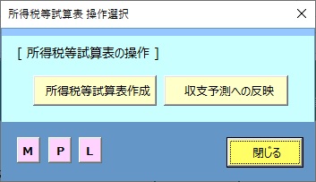メニュー画面で[所得税等試算表作成]を選択すると、下図の操作画面が表示されます。