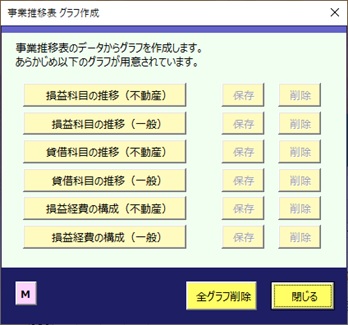 ・[閉じる]ボタンでグラフ作成画面を閉じます。この時表示されているグラフも閉じます。